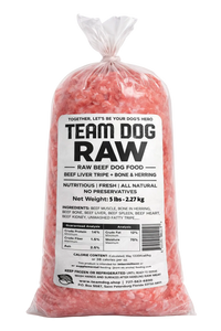 TEAM DOG RAW BEEF is a raw dog food option with 100% of the highest-quality beef, tripe, liver, and herring. Team Dog Raw is farm-fresh and sustainably sourced with 14% protein and 14% fat content. It's a perfect complement to augment your dry food diet with the best!