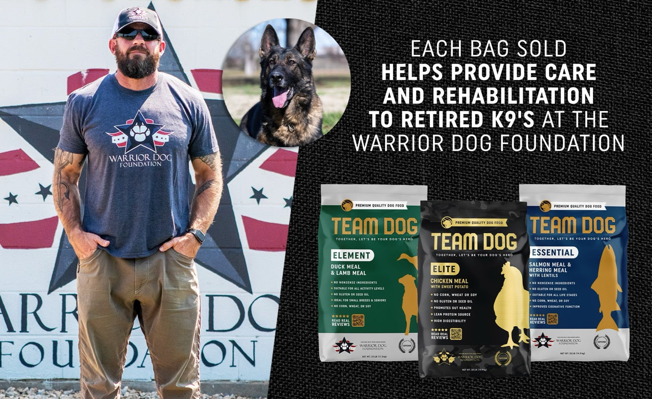 Proceeds from every dry food purchase in the Team Dog Shop support the Warrior Dog Foundation.